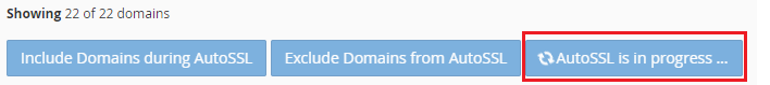 4. cPanel cambiará el estado de sus instalaciones SSL a «AutoSSL está en progreso …». Esto puede demorar hasta 10 minutos en completarse.