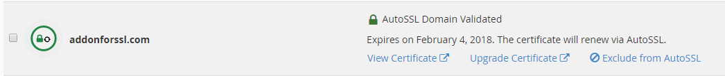 Nuestros servidores tienen habilitado AutoSSL, lo que significa que intentaremos instalar automáticamente un certificado SSL en sus dominios. Sin embargo, puede instalar sus certificados manualmente de forma masiva directamente a través de cPanel con unos pocos clics: