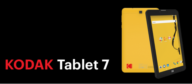 La Kodak Tablet 7 tal y como su nombre también lo indica tiene una pantalla LCD de 7 pulgadas y una resolución de 1024 x 600 píxeles. Además, incorpora un procesador de cuatro núcleos MediaTek MT8321 (1.3GHz) junto con 1GB de RAM y 16GB de espacio para el almacenamiento de los datos. También hay una ranura para tarjetas microSD de hasta 64GB y dos ranuras mini SIM con soporte para redes 3G además cuenta con una cámara trasera de 8 megapíxeles y una cámara frontal de 2 megapíxeles para videollamadas. El sistema operativo de fábrica es el Android 7.0 Nougat, mientras que la batería del terminal tiene una capacidad de 2500mAh y debería brindar una autonomía aproximada de 3.5 horas. Finalmente, el nuevo tablet de Kodak también incorpora un conector de auriculares de 3.5mm y un puerto micro USB para la carga y transferencia de los datos.